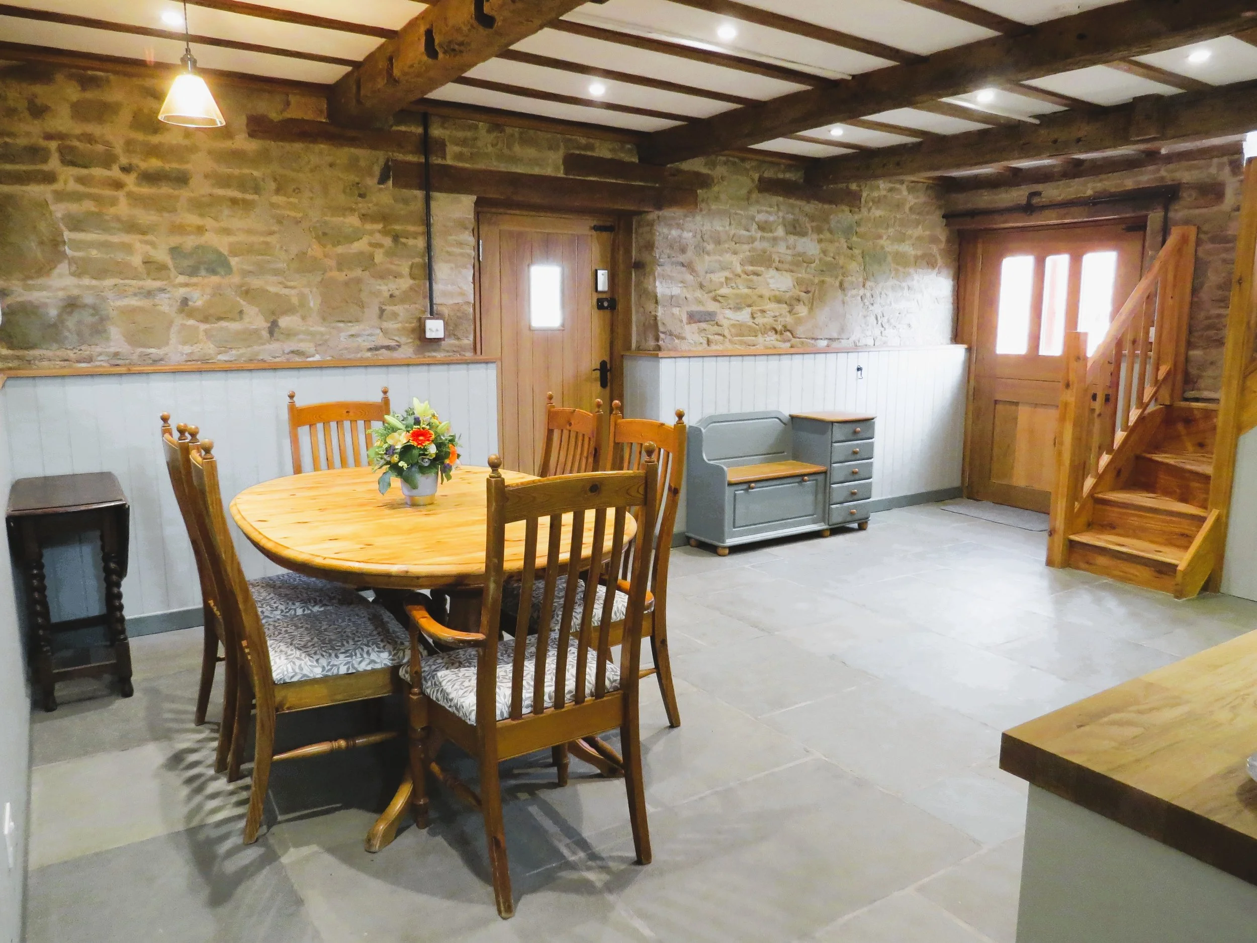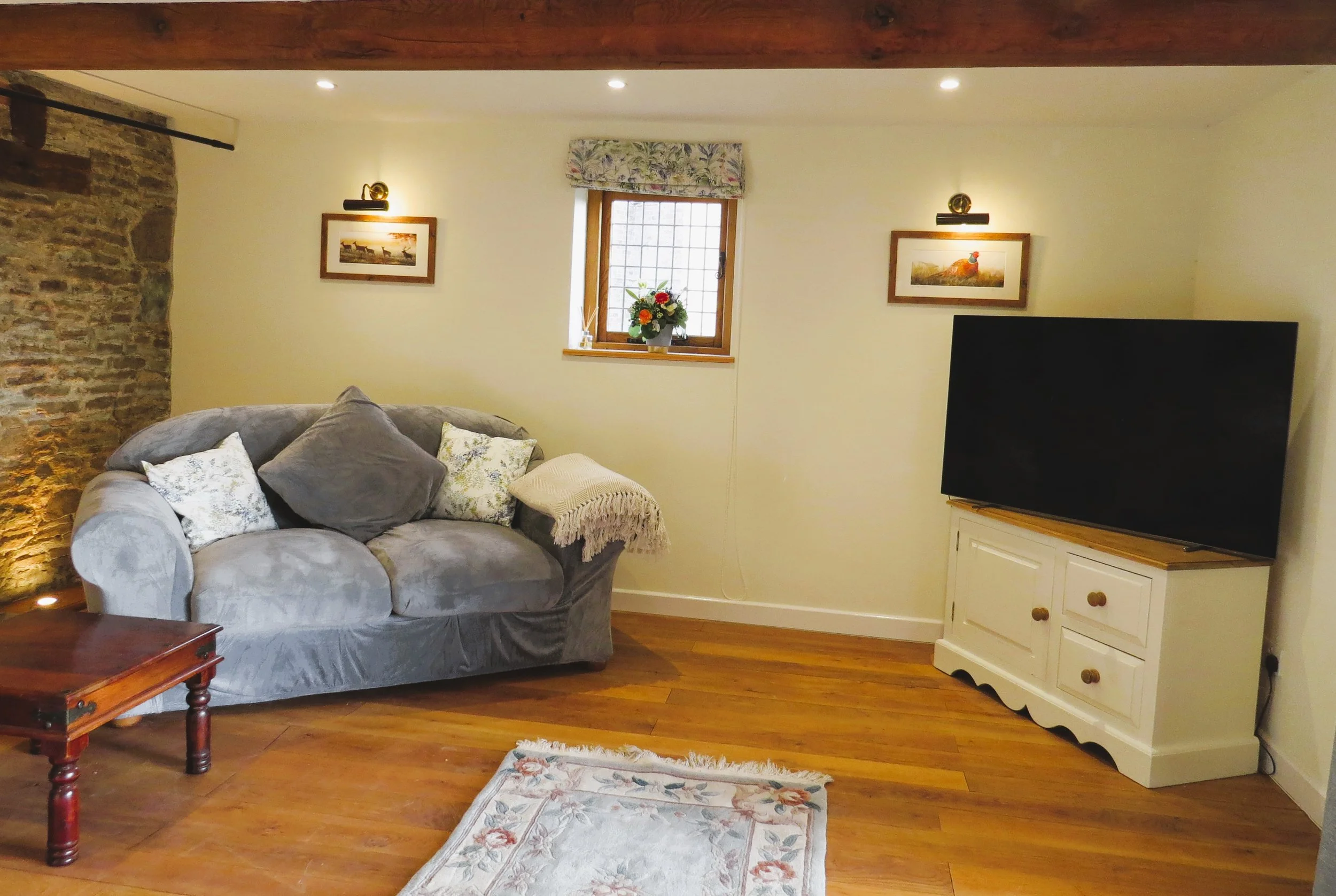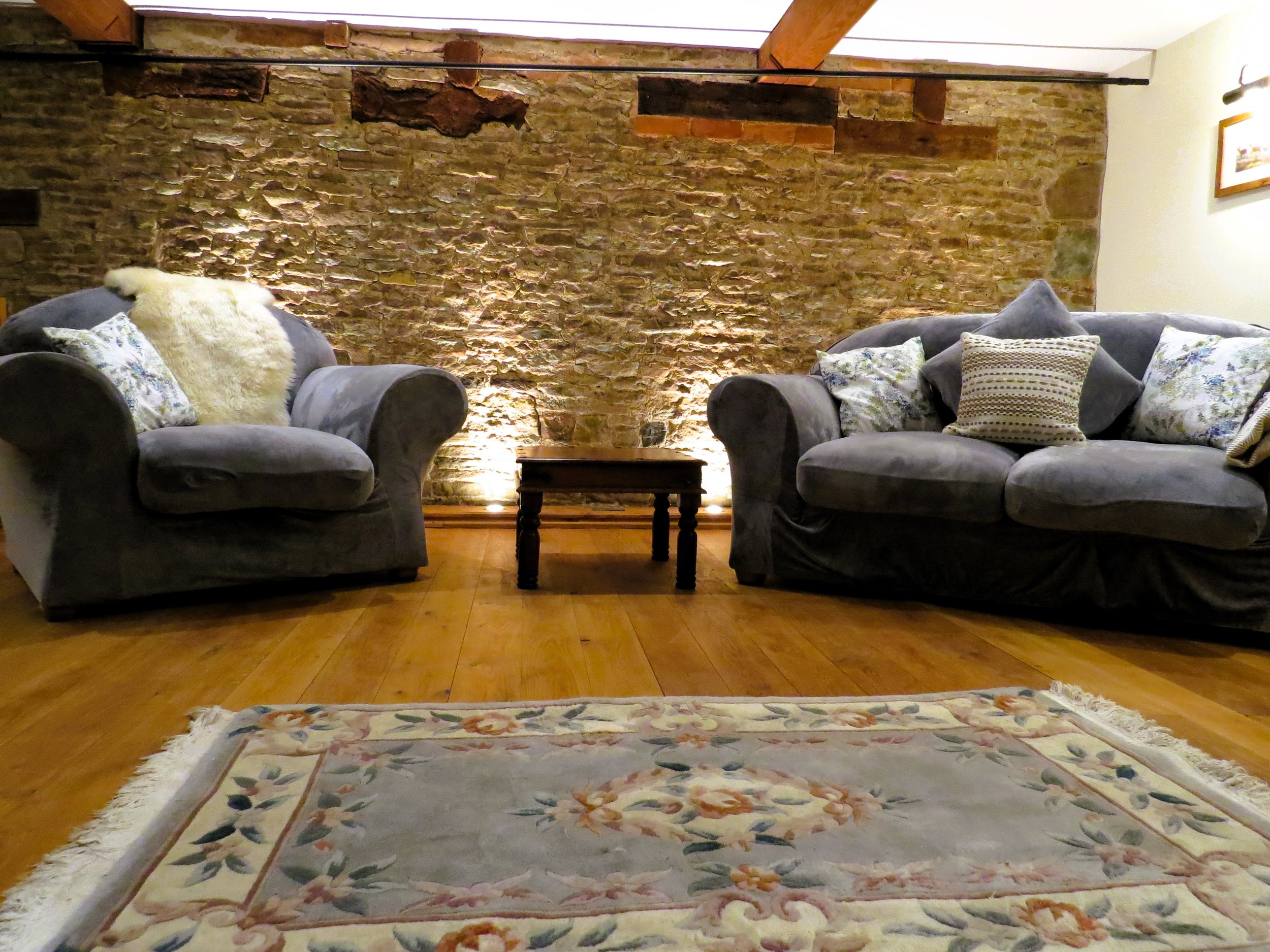 This spacious 2 bedroom cottage makes for a perfect countryside getaway. Upstairs, there are two ensuite bedrooms and one guest toilet. Downstairs there is a fully equipped kitchen and a beautiful lounge. The kitchen is fitted with a fridge, freezer, oven, hob and microwave oven as well as a complete set of plates, glasses, cutlery and cook wear. The living room has stunning views over the fields and in the evening enjoy up lighting that accentuates the traditional stone wall. In addition there’s a full book case with a large selection of children, teen and adult books as well as board games. The television is a smart television equipped with a fire stick for an enjoyable viewing experience.